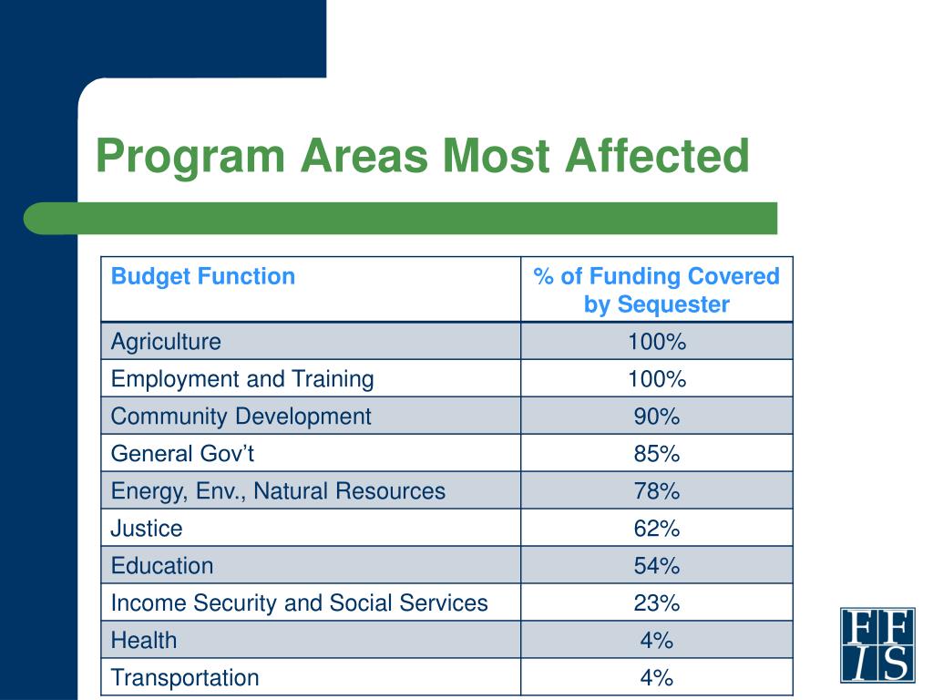 Sequester: What We Don’t Know How will individual programs be affected? • Percentage reduction applied to FY 2013 funding (or CR level) • OMB has authority to apply exemptions and special rules • Examples (Medicare, UI, health care reform, trust funds)