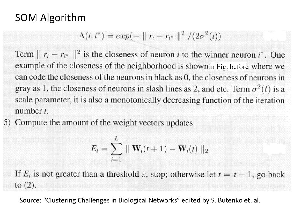 SOM Algorithm in Fig. before Source: “Clustering Challenges in Biological Networks” edited by S. Butenko et. al.