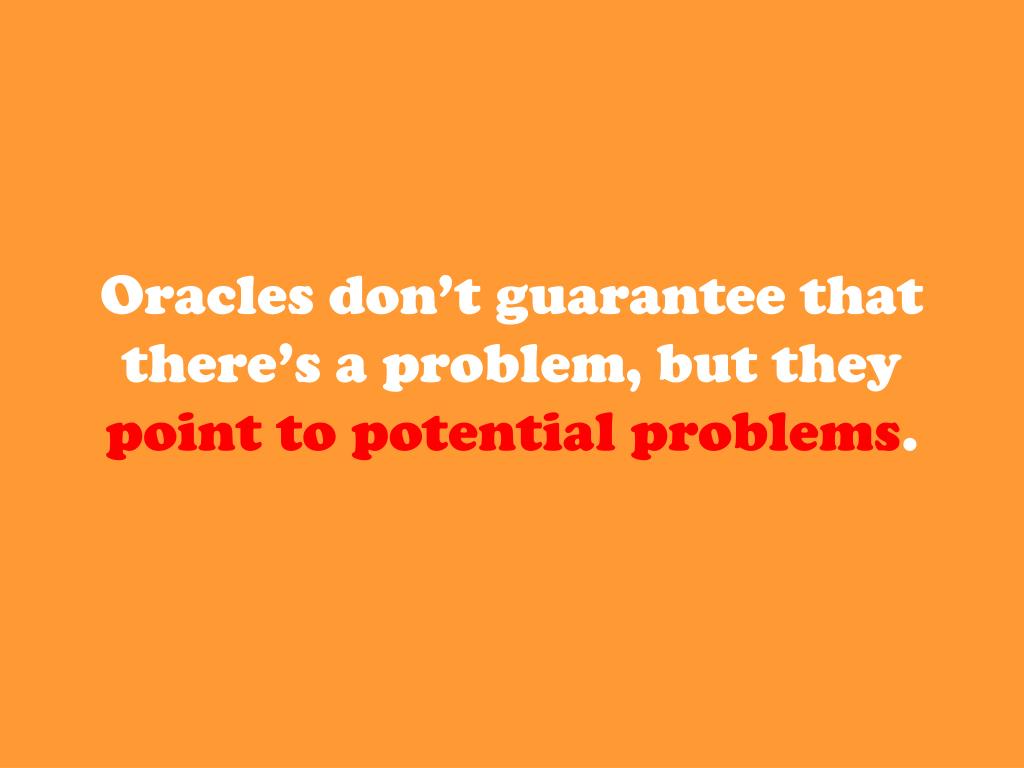 Oracles don’t guarantee that there’s a problem, but they point to potential problems.