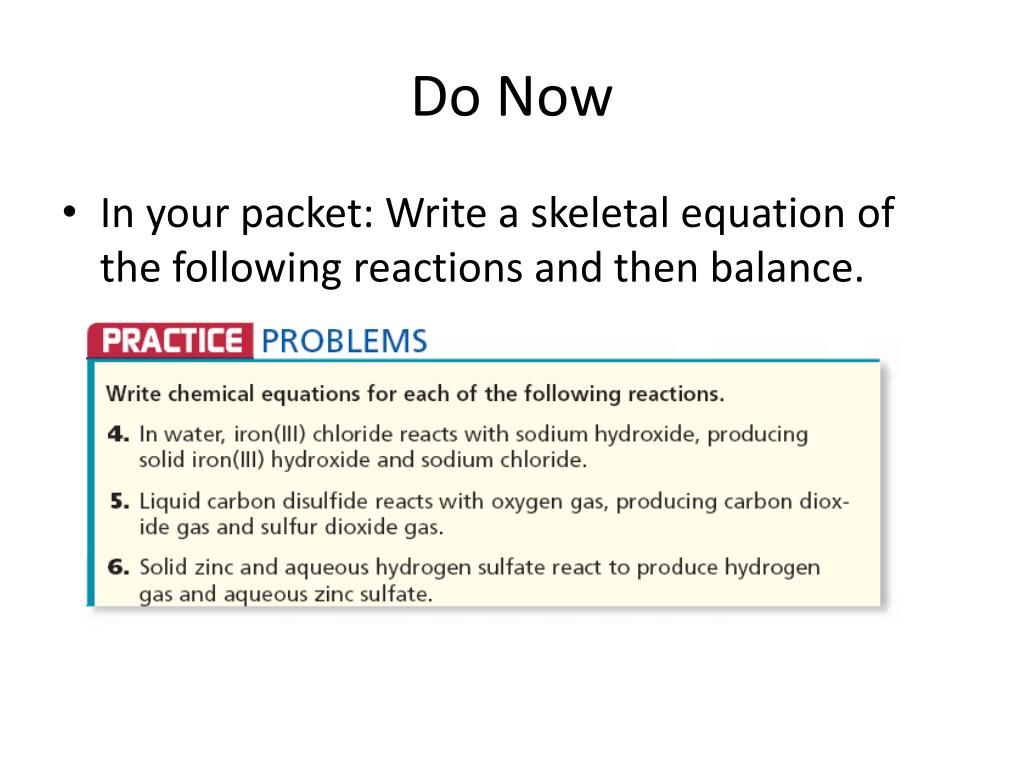 Do Now • In your packet: Write a skeletal equation of the following reactions and then balance.