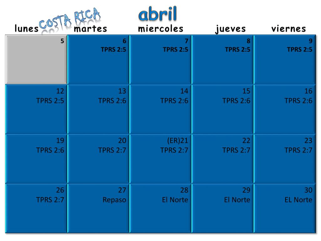 COSTARICA abril lunesmartesmiercolesjuevesviernes