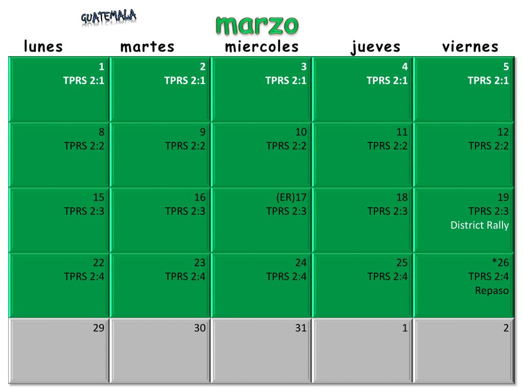 GUATEMALA marzo lunesmartesmiercolesjuevesviernes