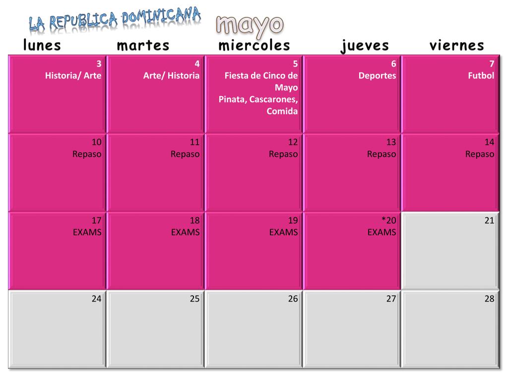 La republicaDominicana mayo lunesmartesmiercolesjuevesviernes