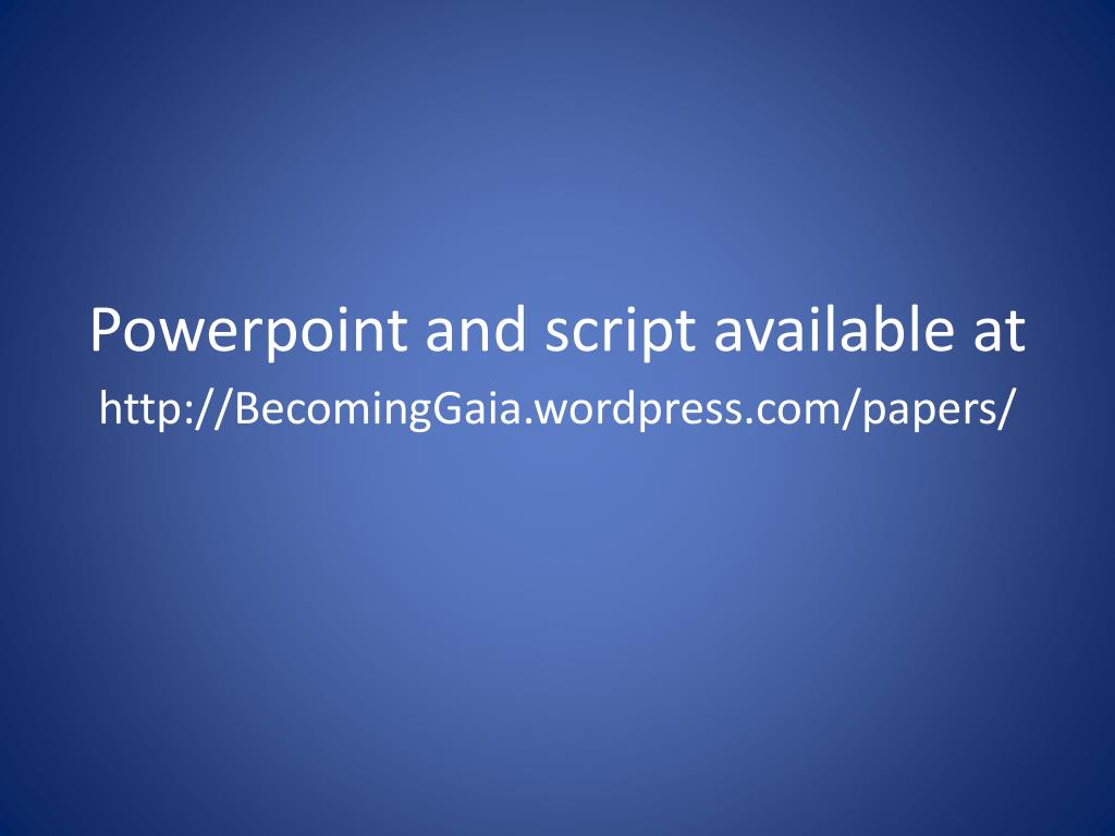 Powerpoint and script available at http://BecomingGaia.wordpress.com/papers/