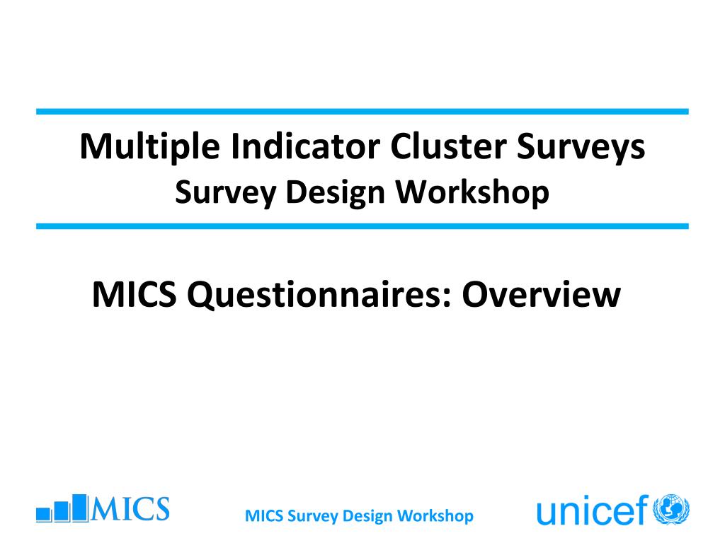 MICS Survey Design Workshop Multiple Indicator Cluster SurveysSurvey Design Workshop MICS Questionnaires: Overview