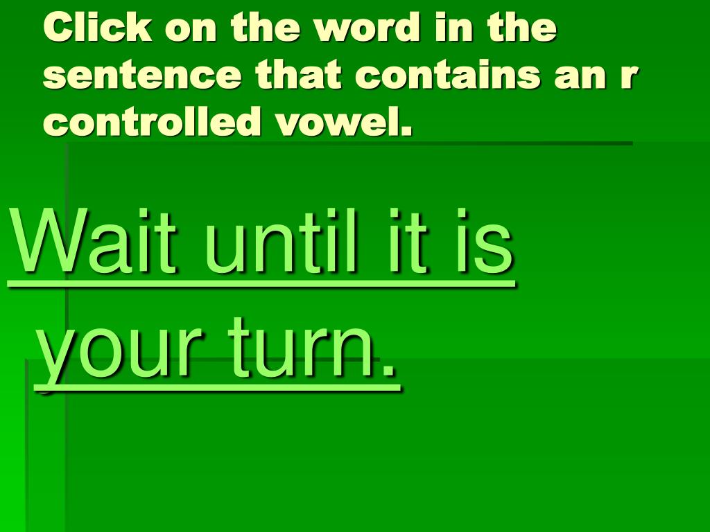 Click on the word in the sentence that contains an r controlled vowel. Wait until it is your turn.