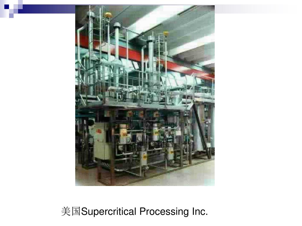 超临界流体萃取法的优点 • 萃取速度高于液体萃取,特别适合于固态物质的分离提取。 • 在接近常温的条件下操作,能耗低于一般的精馏法,适于热敏性物质和易氧化物质的分离。 • 传热速度快,温度易于控制。 • 适合于非挥发性物质的分离。