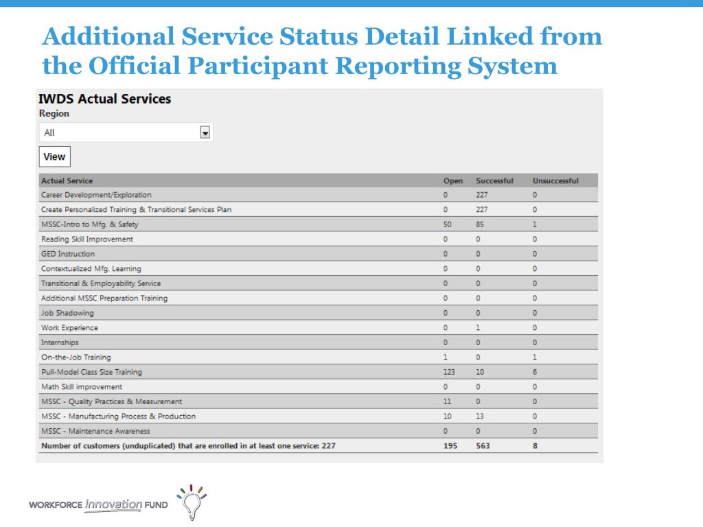 Additional Service Status Detail Linked fromthe Official Participant Reporting System