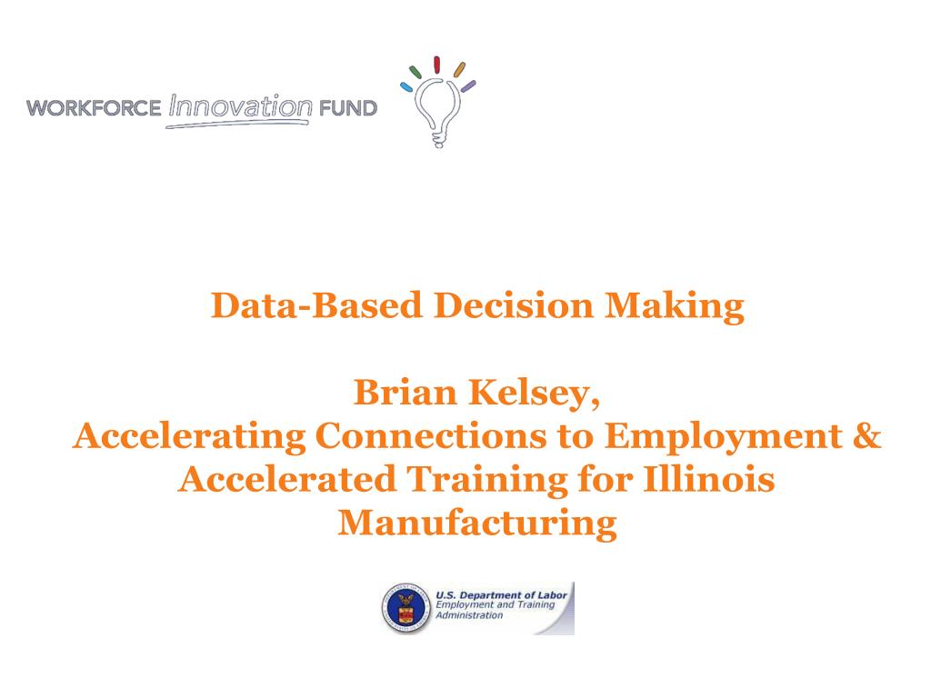 Data-Based Decision MakingBrian Kelsey,Accelerating Connections to Employment &Accelerated Training for Illinois Manufacturing