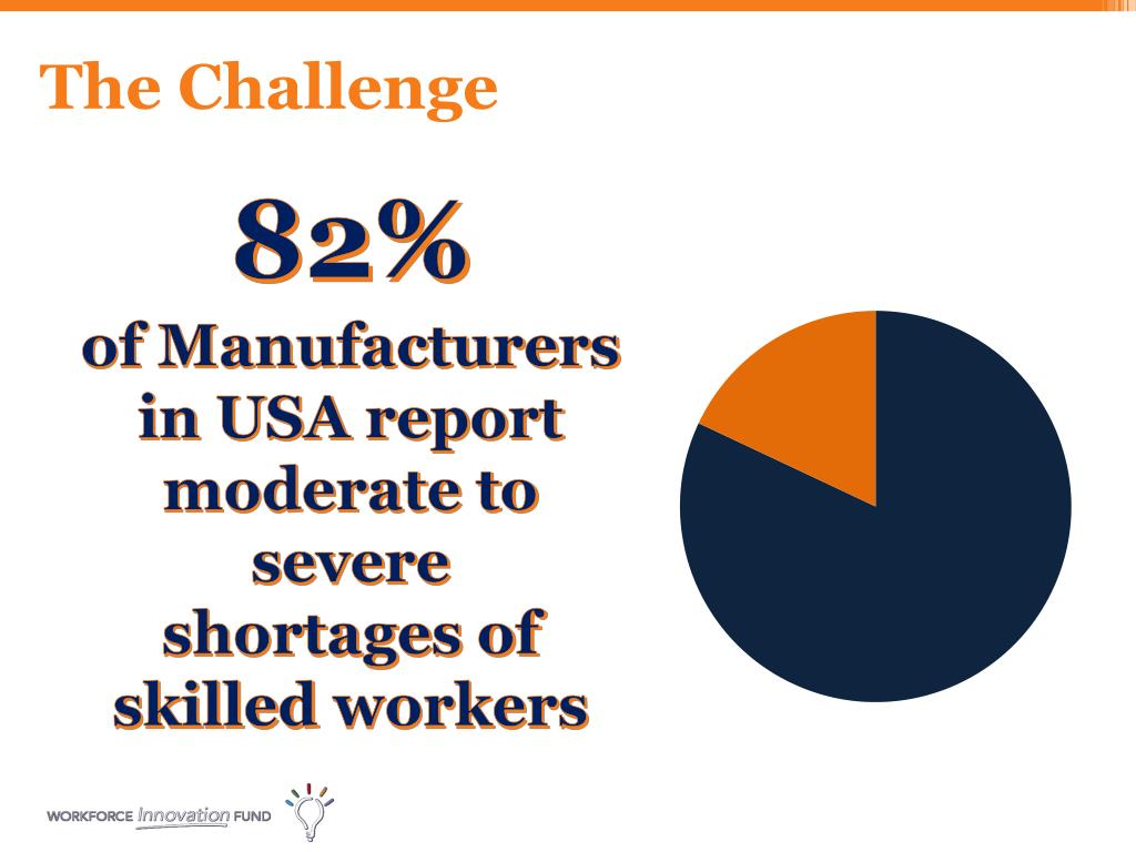 The Challenge 82% of Manufacturers in USA report moderate to severe shortages of skilled workers