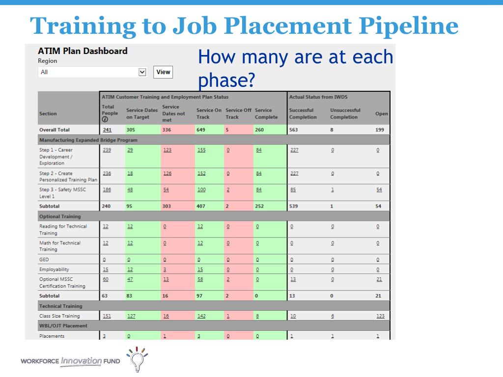 How many are at each phase? Training to Job Placement Pipeline