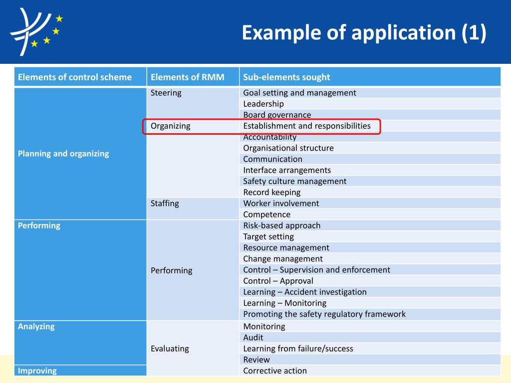 Theoretical basis • Stems from modern management theories, notably Stewhart’s cycle for continuous improvements and quality control • Other sources: ISO standards, safety management in othersectors, studyby DNV for ERA