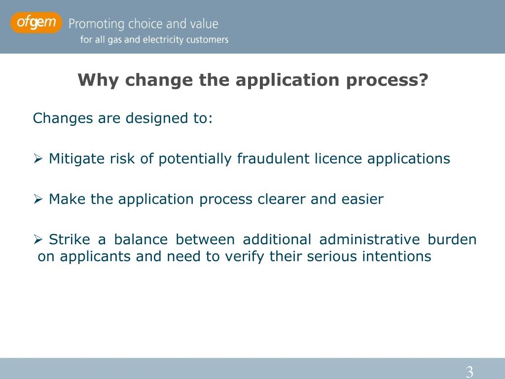 Why change the application process? Changes are designed to: • Mitigate risk of potentially fraudulent licence applications • Make the application process clearer and easier • Strike a balance between additional administrative burden on applicants and need to verify their serious intentions