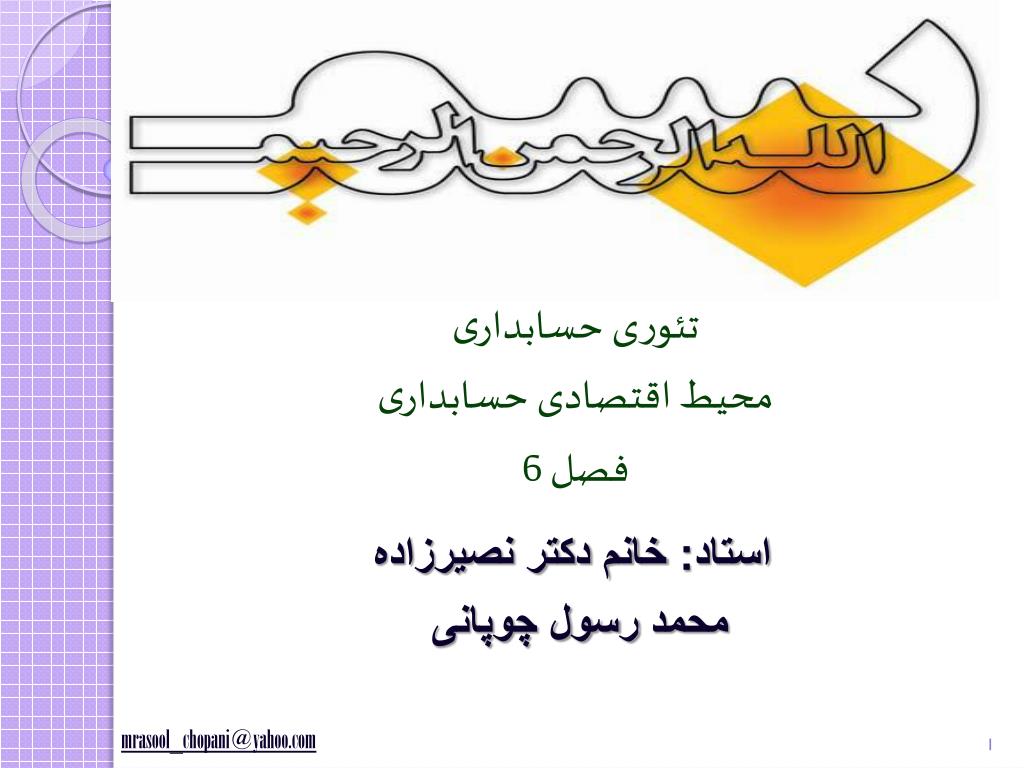 تئوری حسابداری محیط اقتصادی حسابداری فصل 6 استاد: خانم دکتر نصیرزاده محمد رسول چوپانی mrasool_chopani@yahoo.com