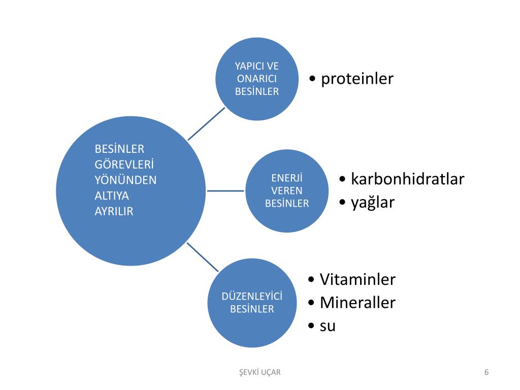 BESİNLER GÖREVLERİ YÖNÜNDEN ALTIYA AYRILIR ŞEVKİ UÇAR