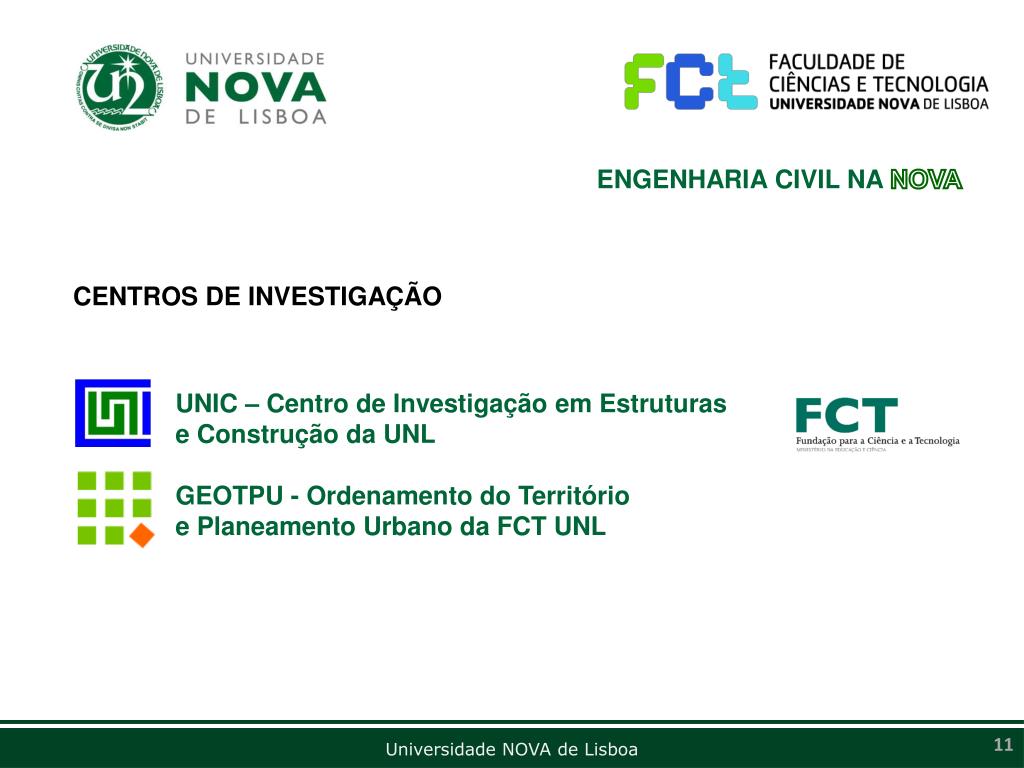 ENGENHARIA CIVIL NA NOVA CENTROS DE INVESTIGAÇÃO UNIC – Centro de Investigação em Estruturas e Construção da UNL GEOTPU - Ordenamento do Território e Planeamento Urbano da FCT UNL