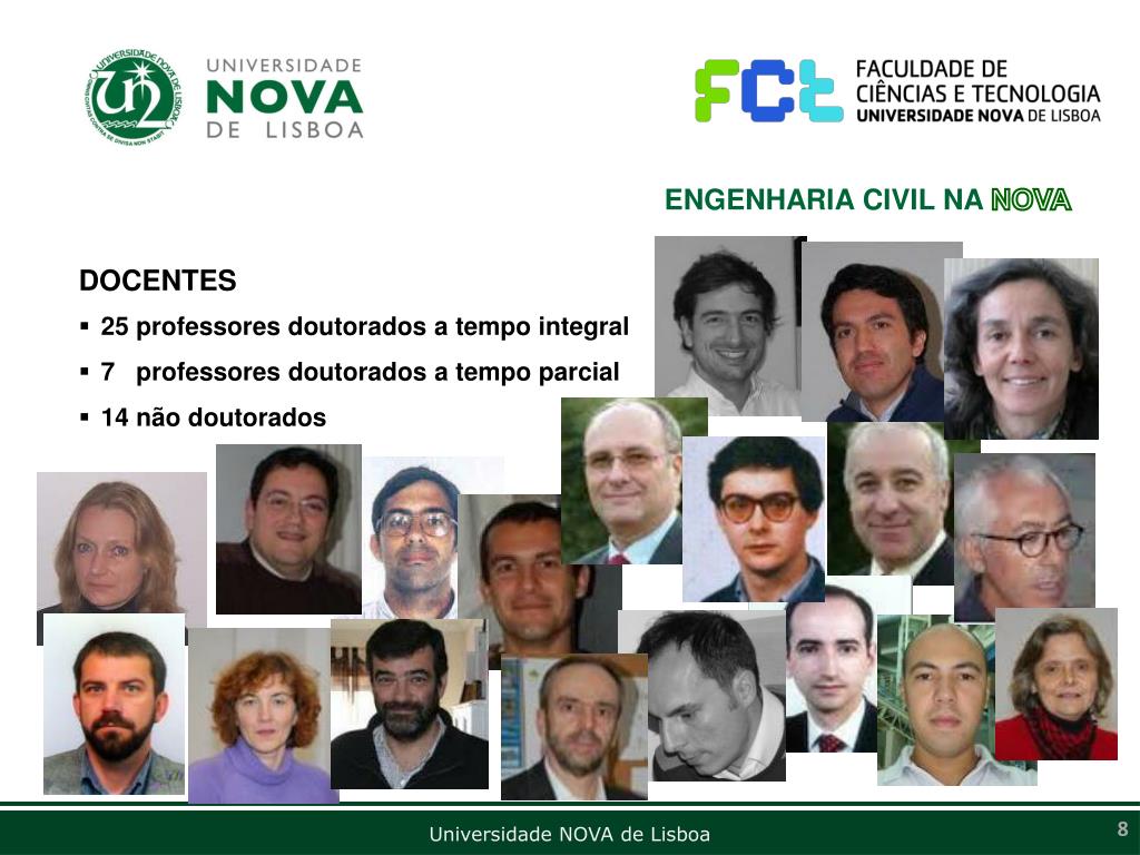ENGENHARIA CIVIL NA NOVA • DOCENTES • 25 professores doutorados a tempo integral • 7 professores doutorados a tempo parcial • 14 não doutorados