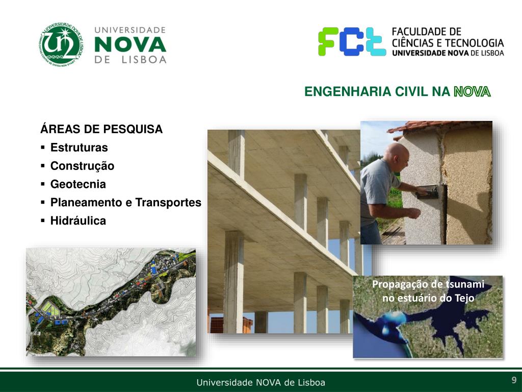 ENGENHARIA CIVIL NA NOVA • ÁREAS DE PESQUISA • Estruturas • Construção • Geotecnia • Planeamento e Transportes • Hidráulica Propagação de tsunami no estuário do Tejo