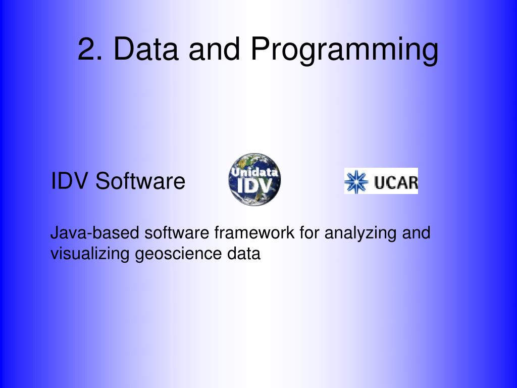 2. Data and Programming IDV SoftwareJava-based software framework for analyzing and visualizing geoscience data