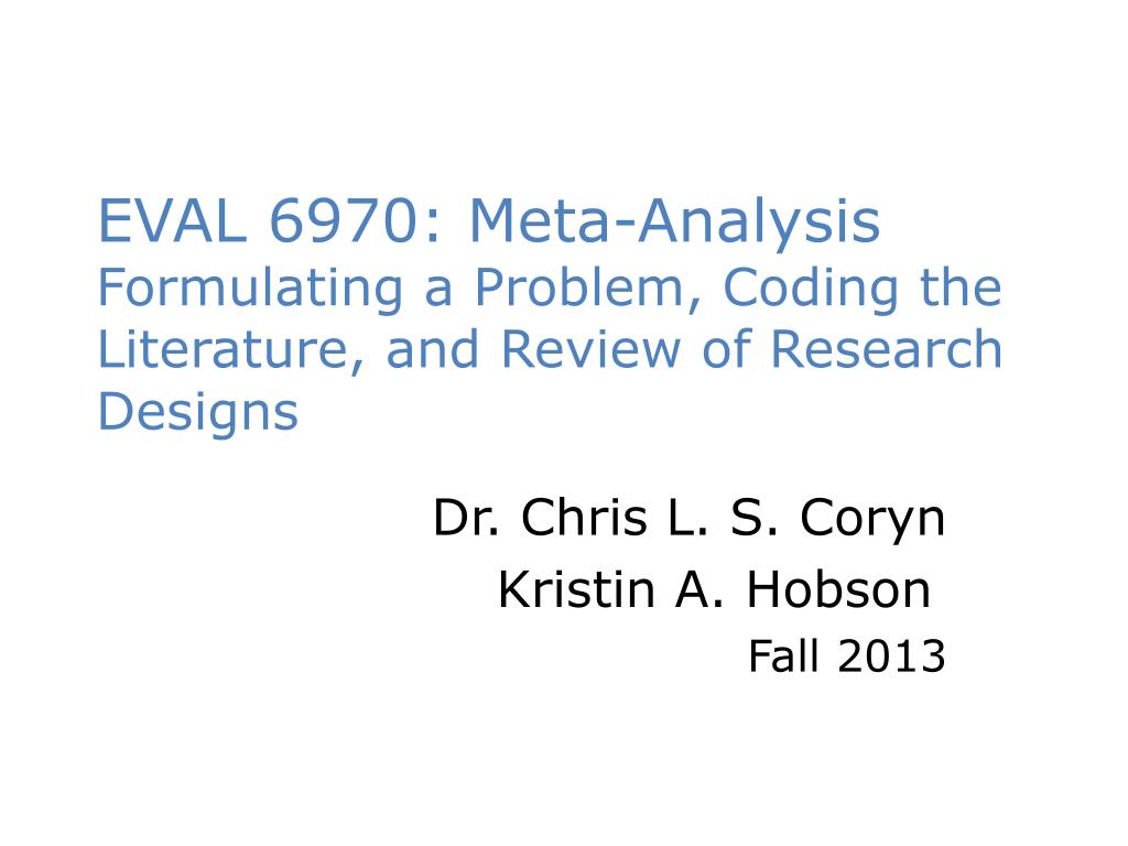 EVAL 6970: Meta-AnalysisFormulating a Problem, Coding the Literature, and Review of Research Designs Dr. Chris L. S. Coryn Kristin A. Hobson Fall 2013