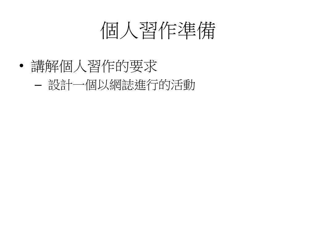 個人習作準備 • 講解個人習作的要求 • 設計一個以網誌進行的活動