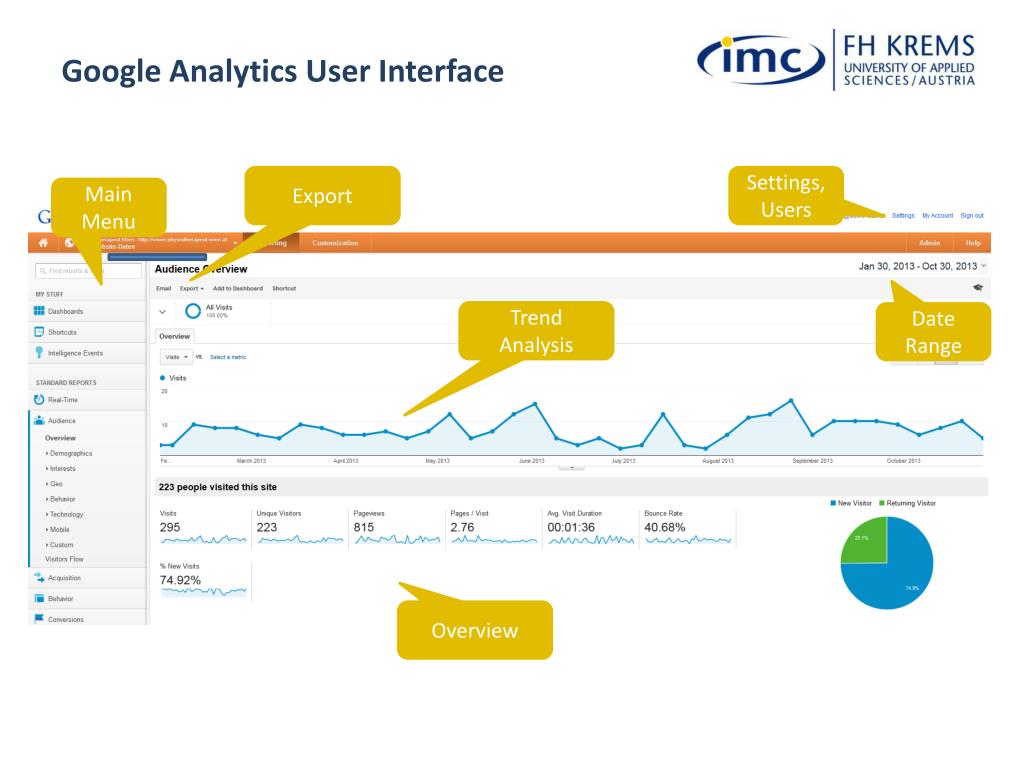 Google Analytics User Interface Export Settings, Users Main Menu Trend Analysis Date Range Overview
