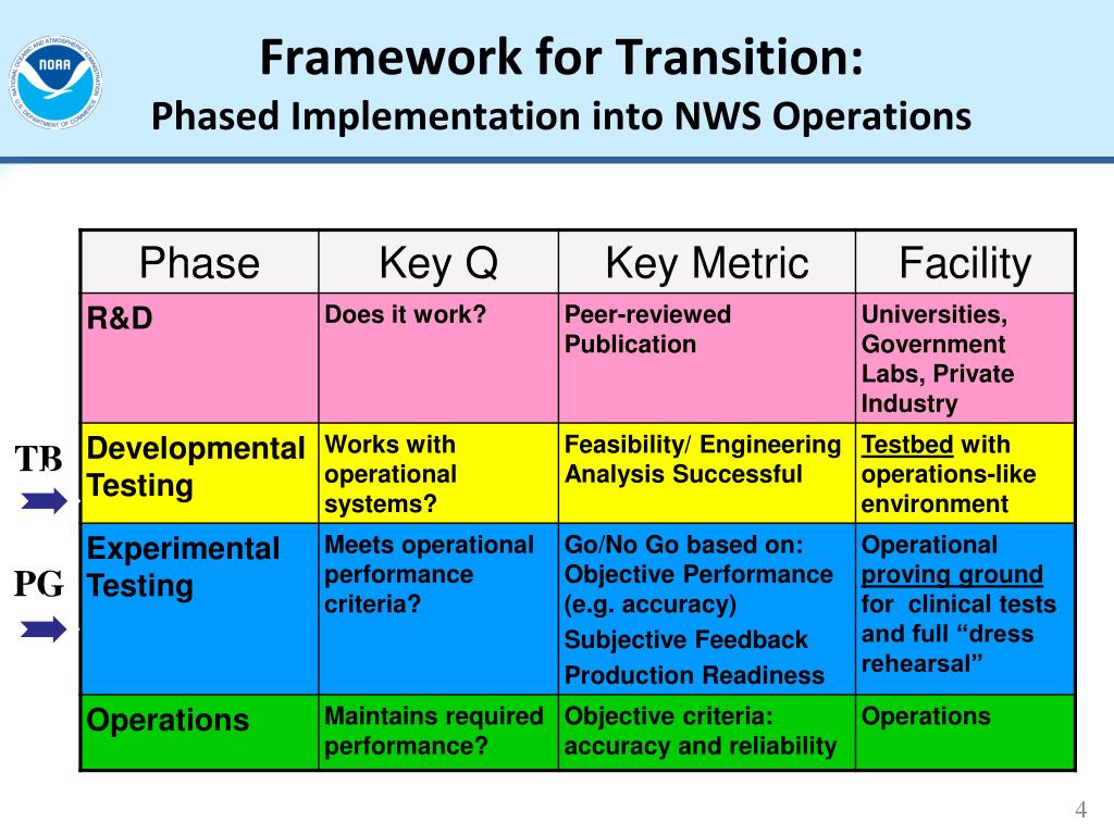 Framework for Transition:Phased Implementation into NWS Operations TB PG