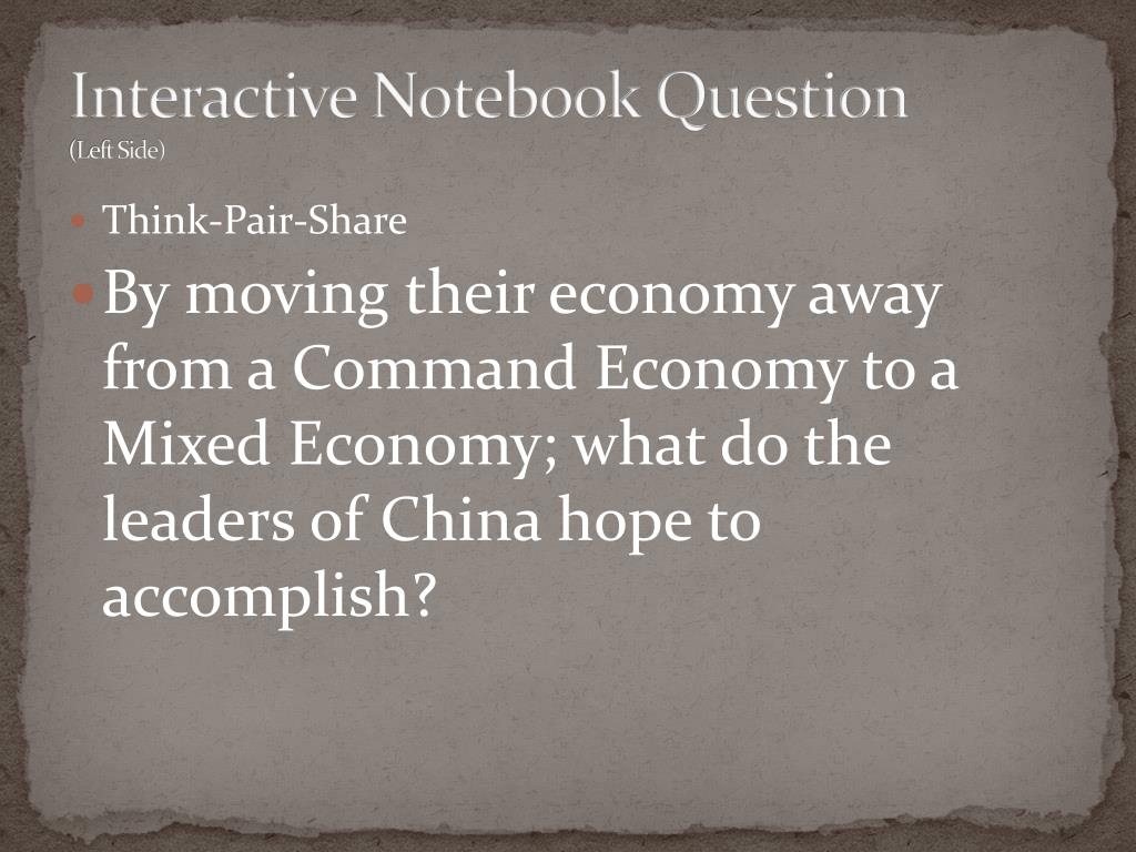 Interactive Notebook Question (Left Side) • Think-Pair-Share • By moving their economy away from a Command Economy to a Mixed Economy; what do the leaders of China hope to accomplish?