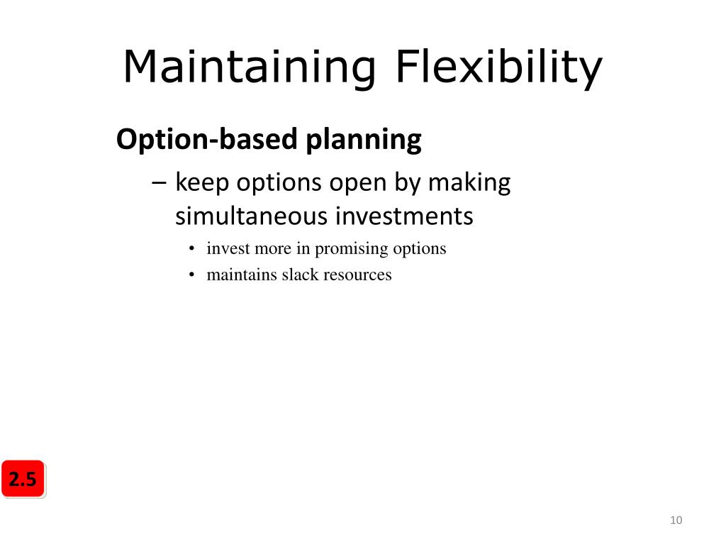 Maintaining Flexibility • Option-based planning • keep options open by making simultaneous investments • invest more in promising options • maintains slack resources 2.5