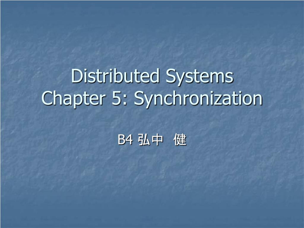 Distributed Systems Chapter 5: Synchronization. B4 弘中 健. 全体の流れ. 分散システムの同期の基礎 Logical lock Distributed Snapshot Election Algorithm Mutual Exclusives Transaction. Distributed System. 複数のマシンのネットワーク これらのマシンは message passing によって通信する。 複数のプロセスを議論する時、それらはそれぞれ別々のマシンにあることを前提に話す。.