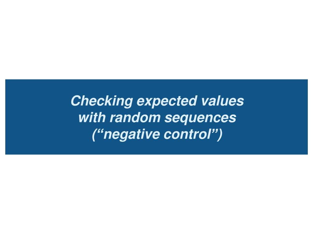blastp with random sequences • pblast of 10 random sequences against the non-redundant database. • Between 1 and 15 matches per trial. • Was this to be expected ? • This corresponds pretty well to the expectation • On the NCBI BLAST web server, the default threshold on expect has been set to 10. • We thus expect, for each request, an average of 10 matches by chance. • We indeed observe this order of magnitude when submitting random sequences.