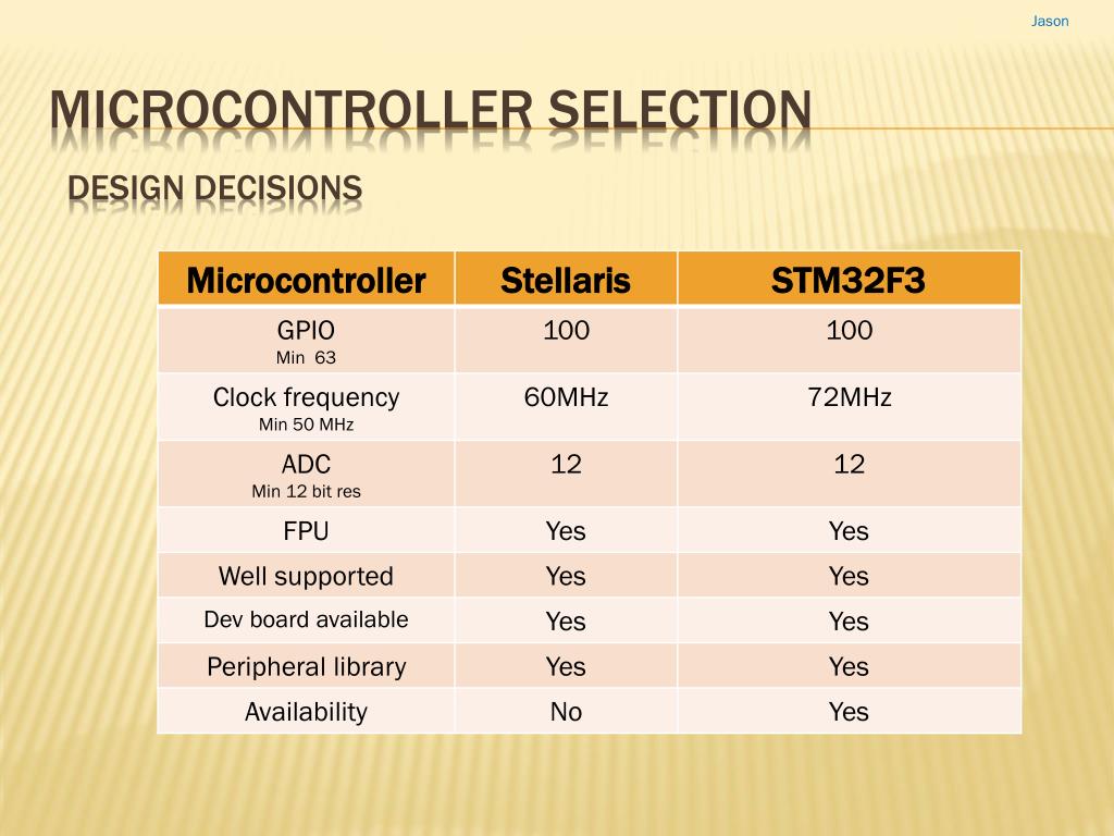 Jason Microcontroller selection • Design decisions