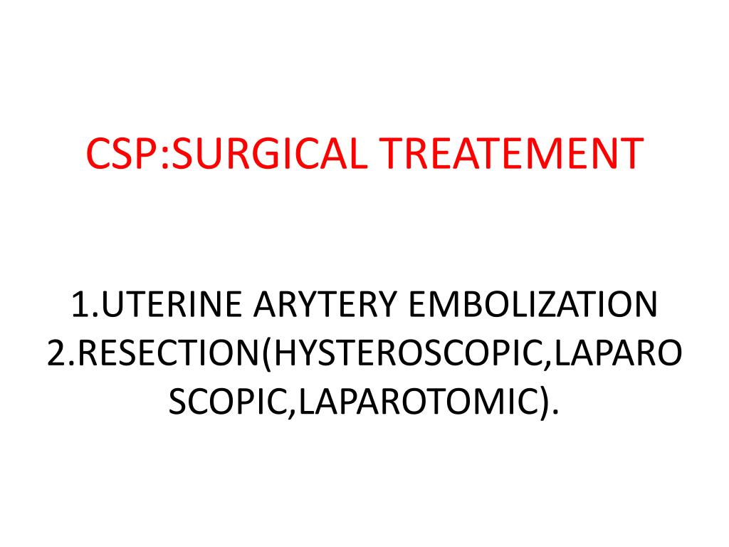 CSP:SURGICAL TREATEMENT1.UTERINE ARYTERY EMBOLIZATION2.RESECTION(HYSTEROSCOPIC,LAPAROSCOPIC,LAPAROTOMIC).
