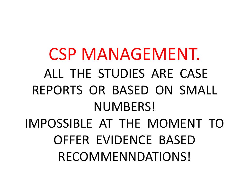 CSP MANAGEMENT. ALL THE STUDIES ARE CASE REPORTS OR BASED ON SMALL NUMBERS!IMPOSSIBLE AT THE MOMENT TO OFFER EVIDENCE BASED RECOMMENNDATIONS!