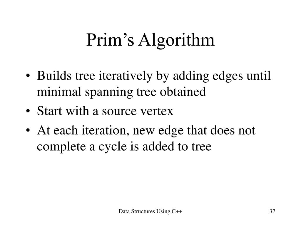 Prim’s Algorithm (end result) Data Structures Using C++