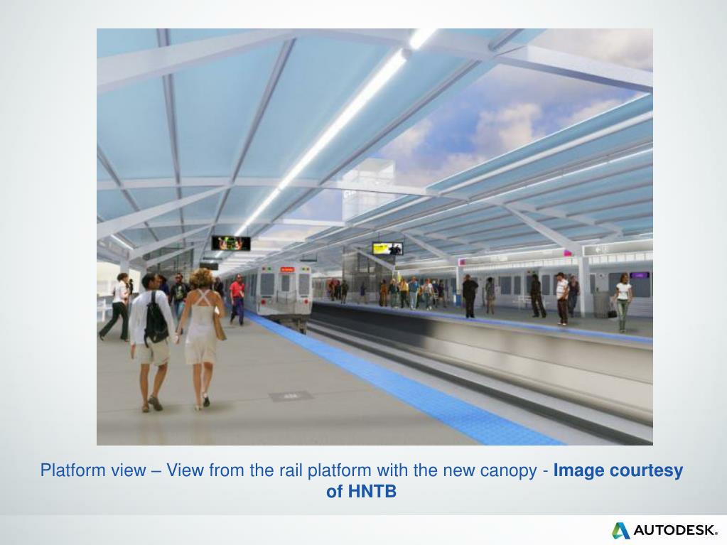 Platform view – View from the rail platform with the new canopy - Image courtesy of HNTB