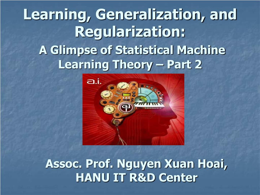 Learning, Generalization, and Regularization: A Glimpse of Statistical Machine Learning Theory – Part 2 Assoc. Prof. Nguyen Xuan Hoai, HANU IT R&D Center