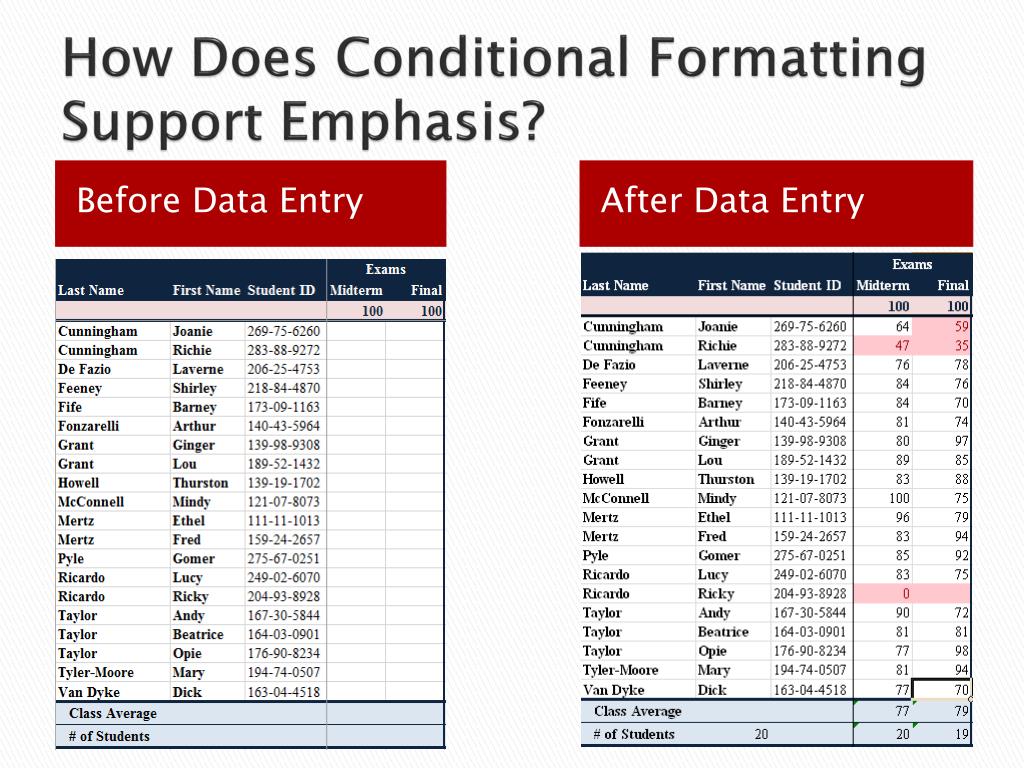 How Does Conditional Formatting Support Emphasis? Before Data Entry After Data Entry