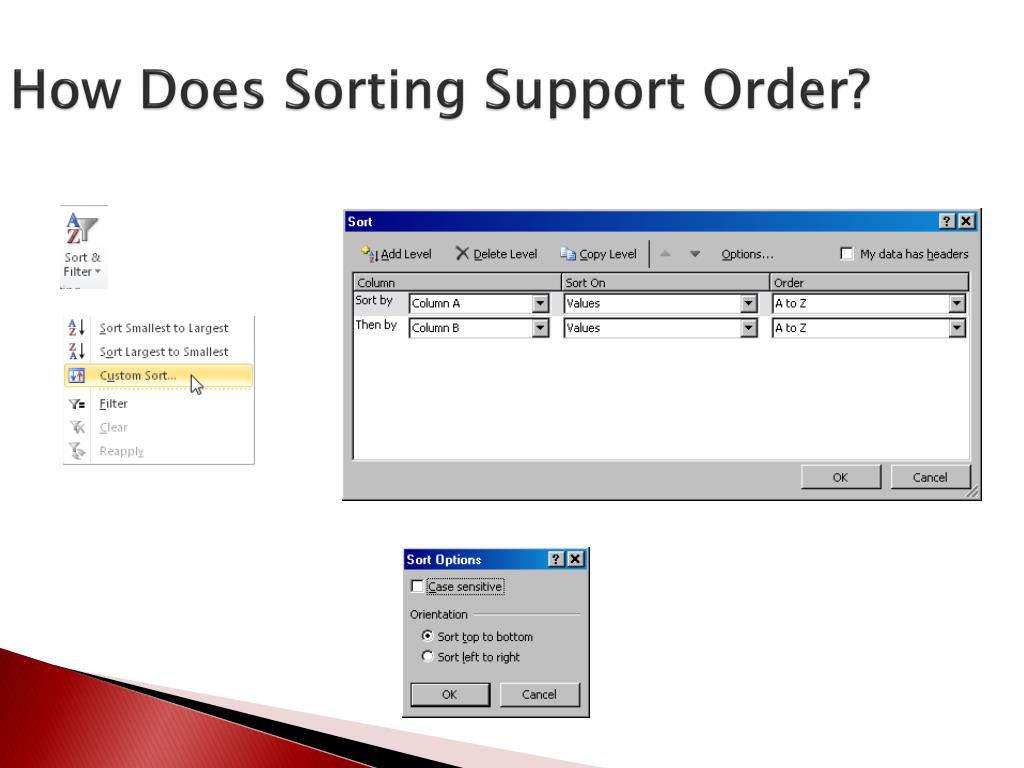 Step 3: Order • Which Excel features would you use to support Order? • Where would you apply those features?