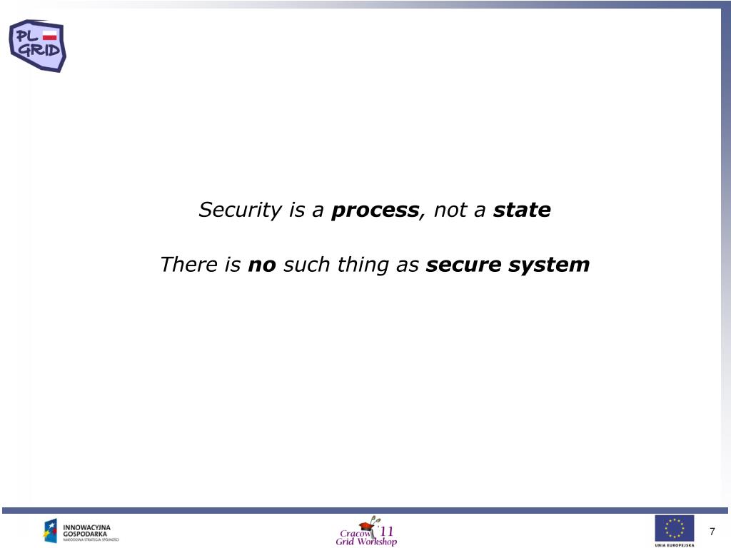 IT Security Threats Ubiquitous services = ubiquitous threats There are many assets to be stolen “General” – hosts as botnet members, processor time for computations etc. “Specific” – especially certain data, trust etc. Why PL-Grid may be especially in danger? Large amount of resources (ca. 15k CPUs, 215 TFlops, 2500TB of storage space The users operate on their research data The users (researchers) might not be sufficiently security aware A set of custom software has been developed The infrastructure is distributed and heterogeneous