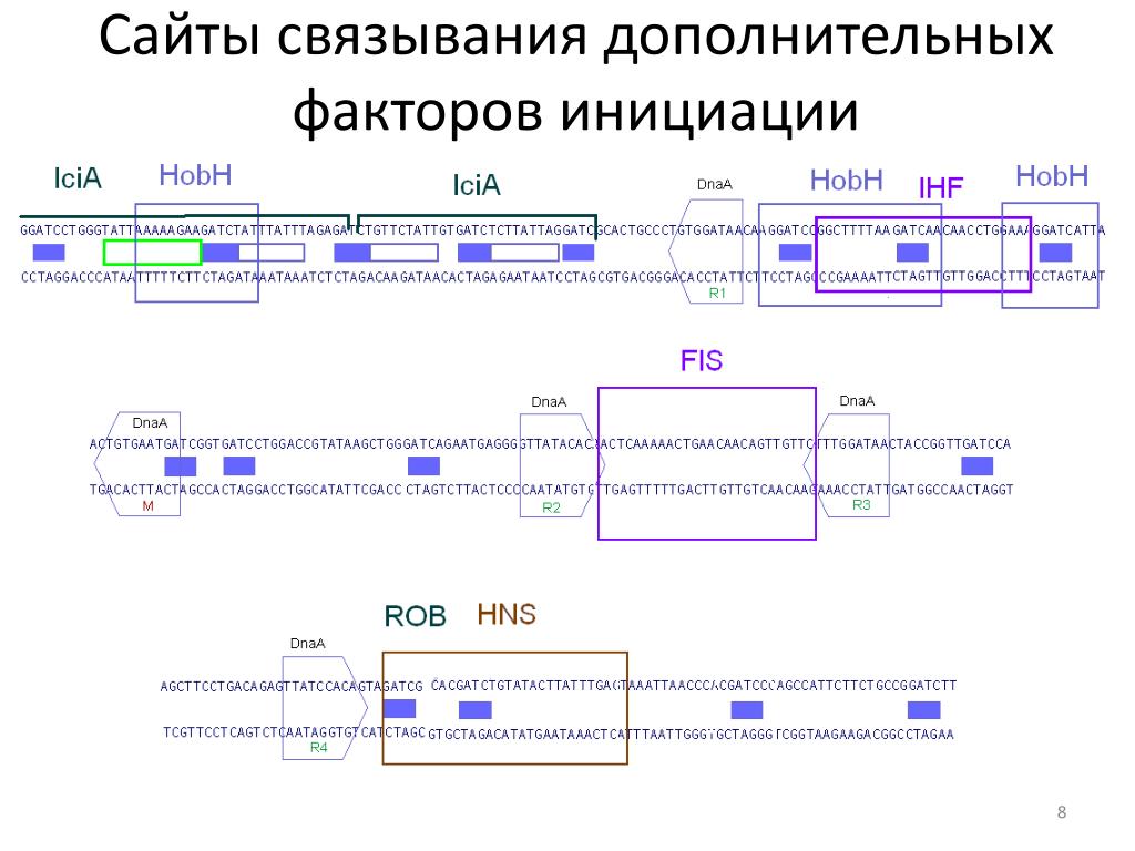 Инициация и контроль репликации. Репликация. Репликация хромосомы Escherichia coli. Ориджин (OriC) E.coli. Ориджин E.coli. Ориджин E.coli. Инициация репликации E.coli. Сайты связывания дополнительных факторов инициации. RNA-P – активация репликации транскрипцией. R- петля