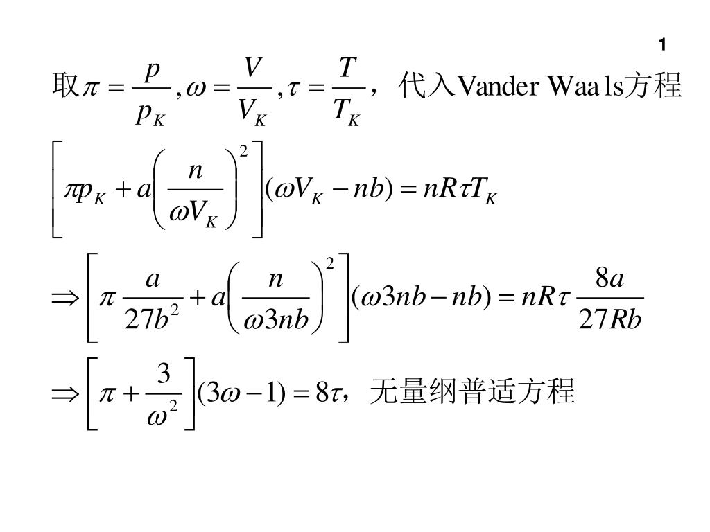 临界等温线 1 • 临界等温线拐点处一、二阶导数都为零 • 求临界点各项状态参量