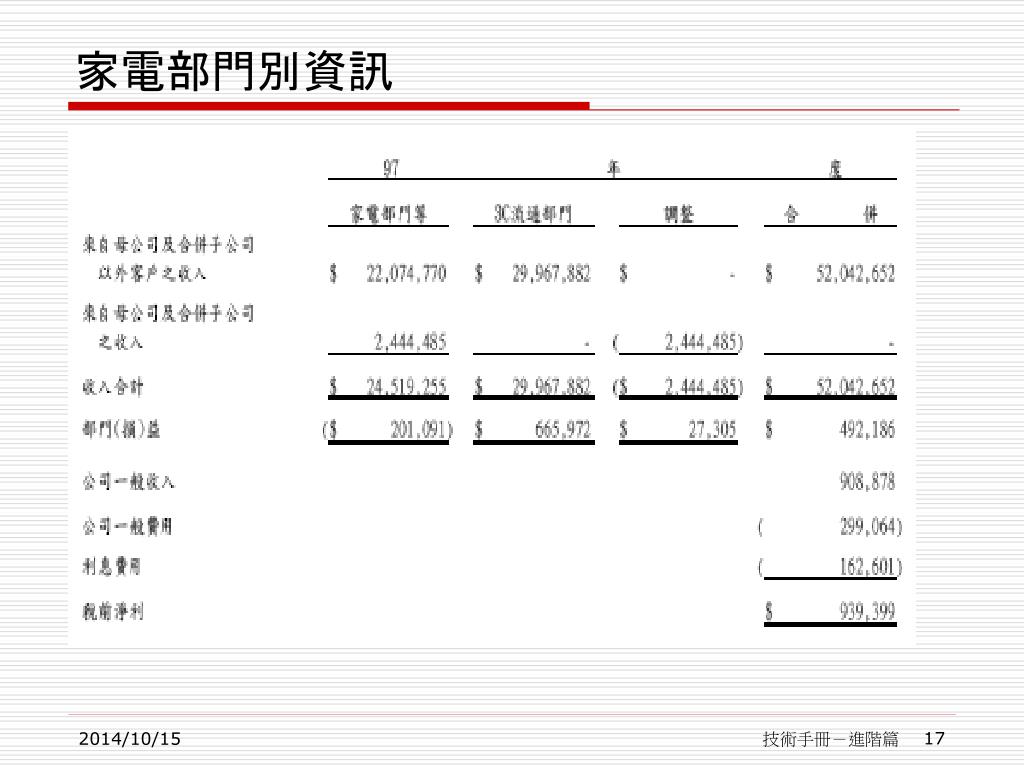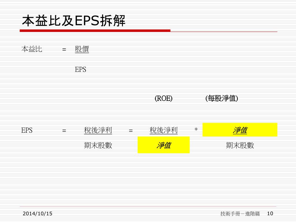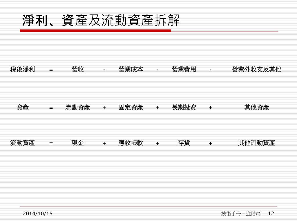 杜邦分析--背景及用途 • 杜邦公司創造 • 通用汽車應用於評估部門績效 • 企業與標竿企業比較決定策略 • 營運—提高營收、降低成本等 • 投資—併購、分割或處分非核心事業等 • 財務—減資、現金增資或舉債等