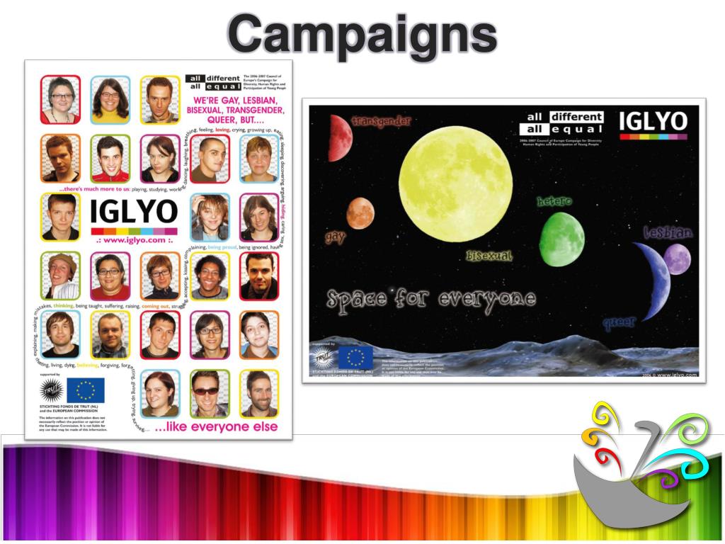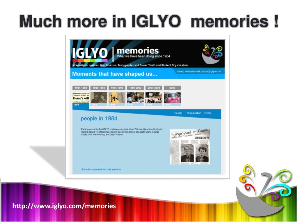 The International The InternationalGay,Lesbian,Youth Organisation TheInternationalLesbian,Gay,Bisexual,Transgender andQueerYouth andStudentOrganisation Present 1984 ILGBTQYSO?!