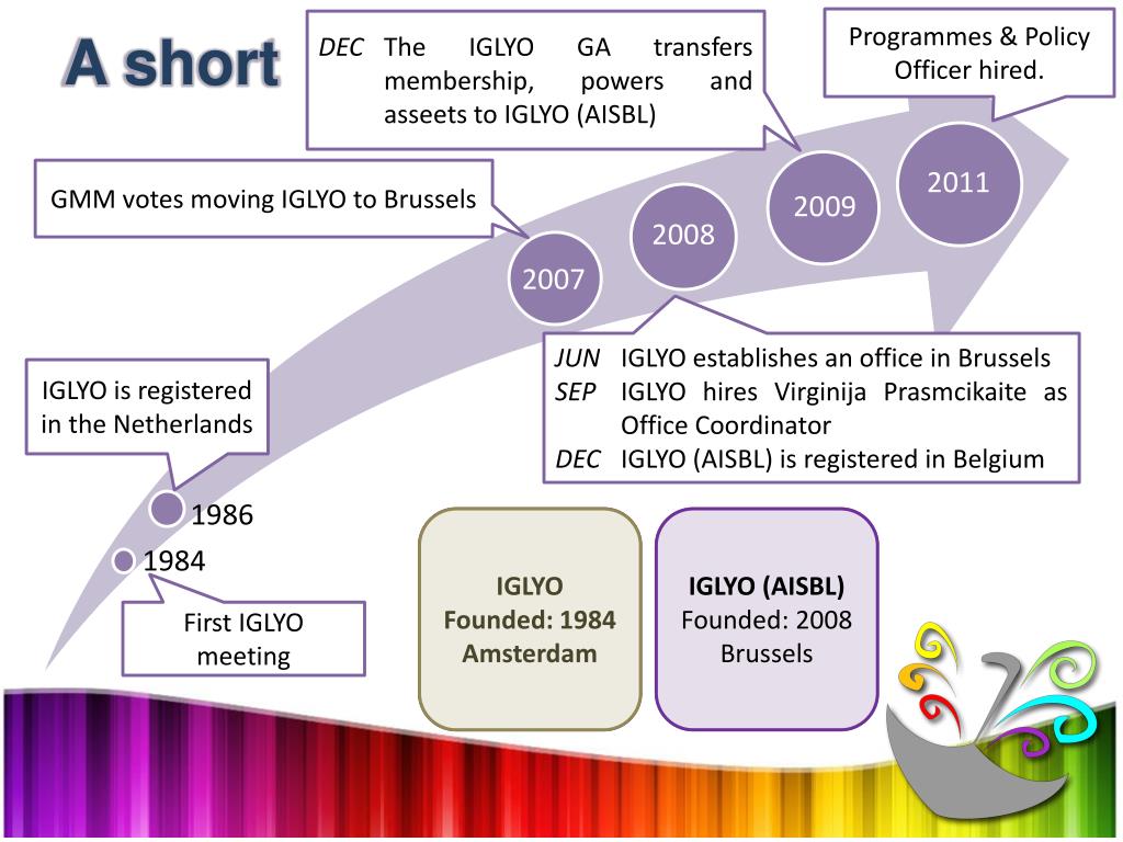 Programmes& PolicyOfficerhired. DECThe IGLYO GA transfersmembership, powers and asseetsto IGLYO (AISBL) A short timeline GMM votes moving IGLYO toBrussels 2011 JUN IGLYO establishesan office in Brussels SEPIGLYO hires Virginija Prasmcikaite as Office Coordinator DEC IGLYO (AISBL) isregistered in Belgium IGLYO isregistered in theNetherlands 1986 IGLYO Founded: 1984 Amsterdam IGLYO Founded: 1984 Amsterdam IGLYO (AISBL) Founded: 2008 Brussels IGLYO (AISBL) Founded: 2008 Brussels First IGLYO meeting