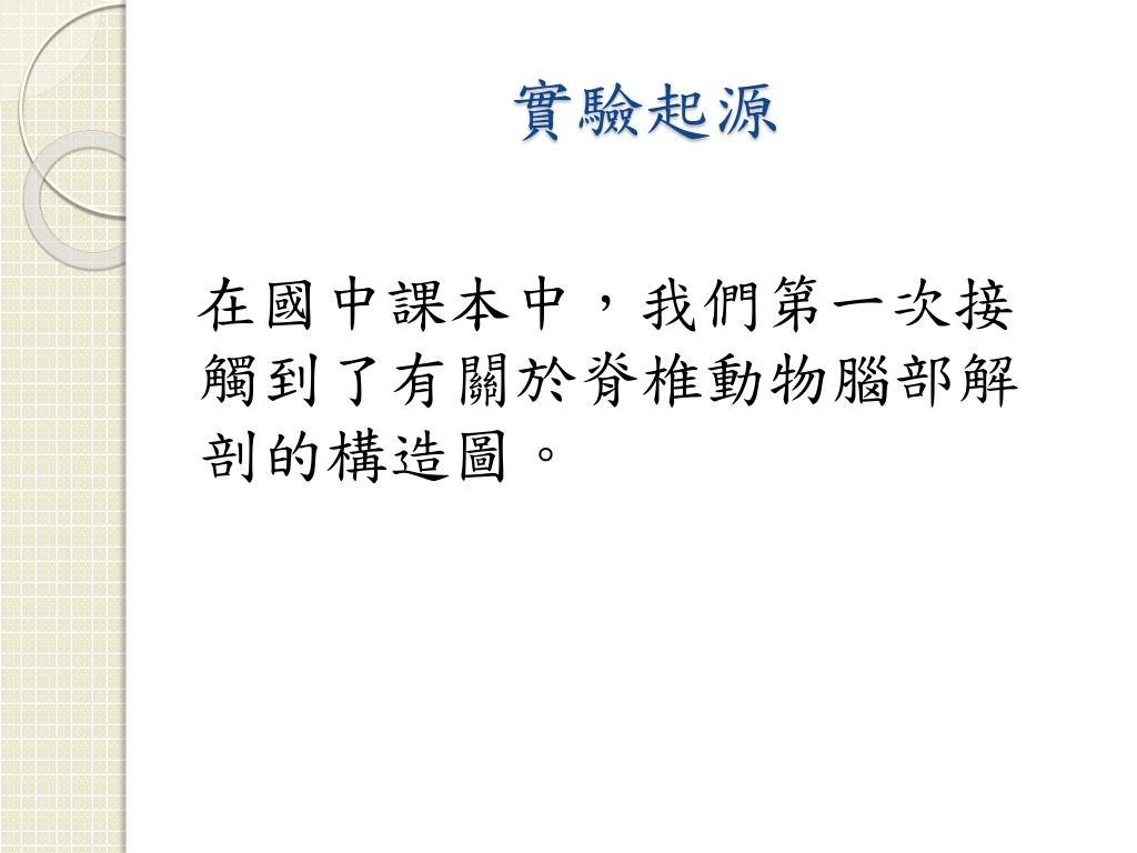 實驗起源 在國中課本中,我們第一次接觸到了有關於脊椎動物腦部解剖的構造圖。