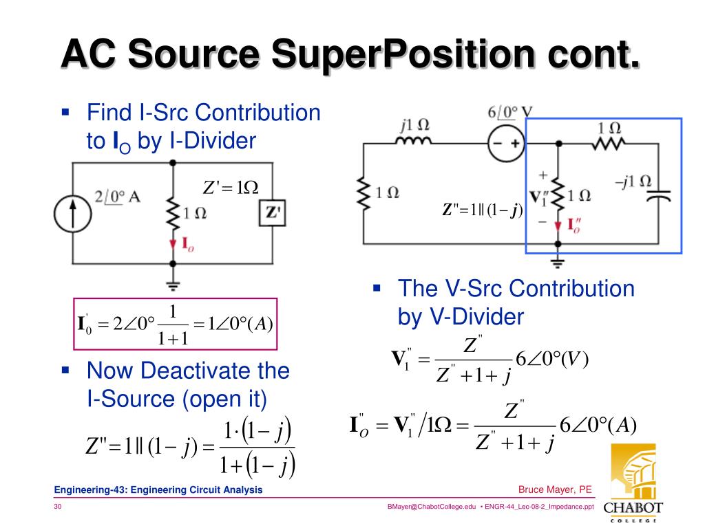 Find I-Src Contribution to IO by I-Divider AC Source SuperPosition cont. • The V-Src Contribution by V-Divider • Now Deactivate the I-Source (open it)