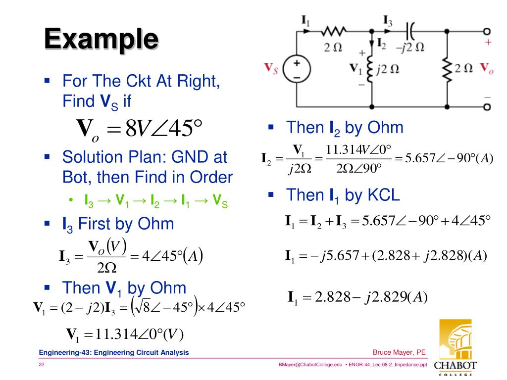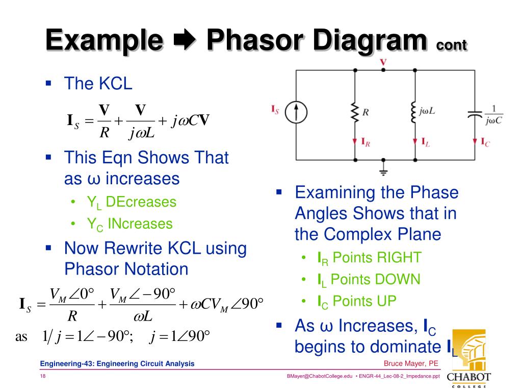 Engineering 43. Impedance KCL & KVL. Bruce Mayer, PE Registered Electrical & Mechanical Engineer BMayer@ChabotCollege.edu. Resistors. Review → V-I in Phasor Space. No Phase Shift. Inductors. i(t) LAGS. Capacitors. i(t) LEADS. Impedance.