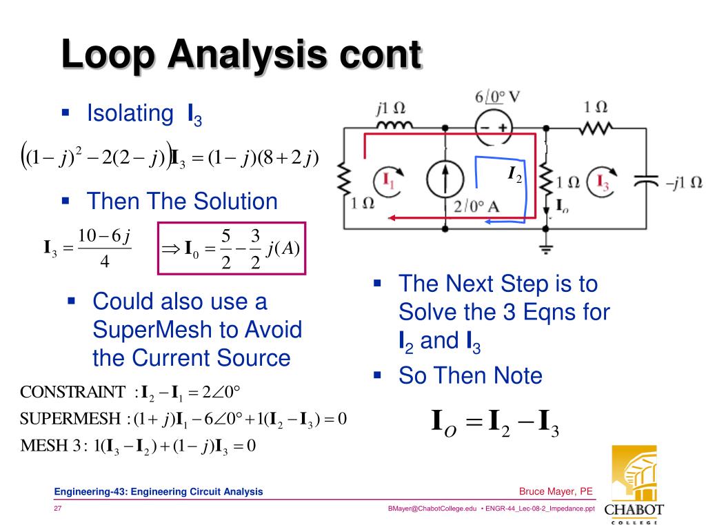 Isolating I3 Loop Analysis cont • Then The Solution • The Next Step is to Solve the 3 Eqns for I2 andI3 • So Then Note • Could also use a SuperMesh to Avoid the Current Source