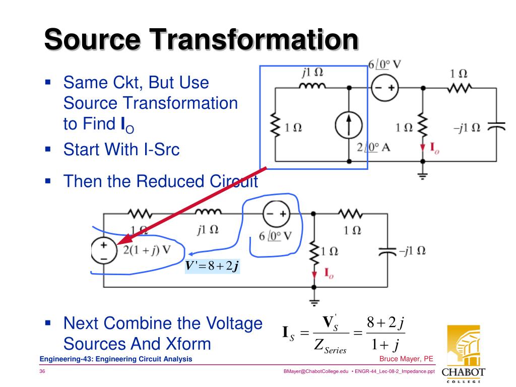 Same Ckt, But Use Source Transformationto Find IO Start With I-Src Source Transformation • Then the Reduced Circuit • Next Combine the VoltageSources And Xform